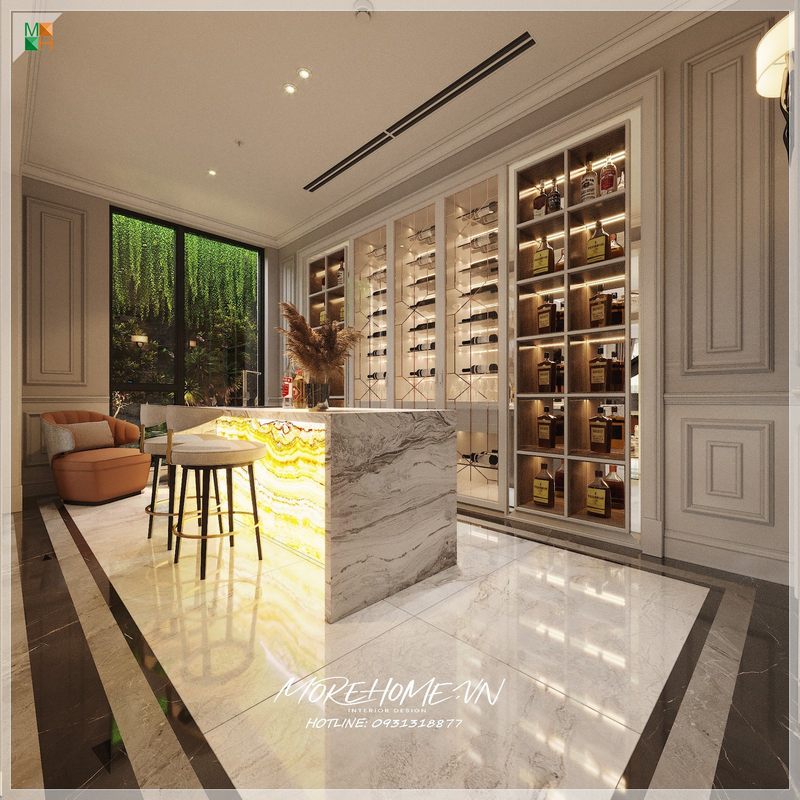 Sự sáng bóng, nhẵn mịn của đá vân mây đã khiến sàn phòng rượu trở nên đẹp mắt, đem lại sự quan tâm, chú ý của rất nhiều khách hàng.