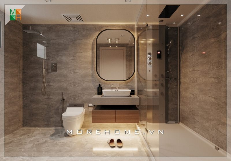 Sự kết hợp giữa đồng bộ gạch lát và ốp tường đẹp làm cho phòng tắm trở nên sang trọng và tiện nghi hơn.