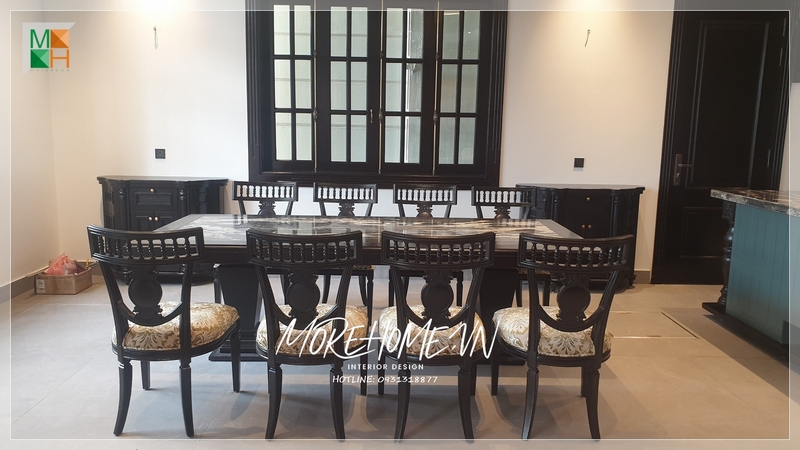 Morehome đã thi công phòng ăn có nội thất phong cách Indochine, kết hợp đẹp Á Đông và cổ điển Pháp, với tiện nghi và thẩm mỹ cao.